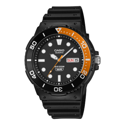 Đồng hồ analog MRW-230H với viền bezel xoay. Một vòng nhôm trên bề mặt viền bezel phản chiếu ánh sáng, tạo thêm nét tinh tế mang phong cách thể thao.