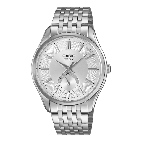 Đồng hồ CASIO MTP-B315D-7AV Chính Hãng sở hữu thiết kế kim truyền thống, tích hợp mặt số phụ hiển thị giờ và khả năng chống nước 50m - một lựa chọn phù hợp cho những ai yêu thích phong cách thanh lịch và sử dụng hàng ngày.
