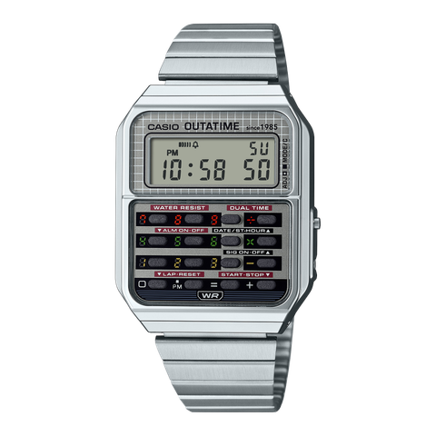 Được xây dựng trên nền tảng mẫu máy tính CASIO CA-500 ra mắt vào những năm 1980, chiếc đồng hồ kỷ niệm này chứa đầy các chi tiết hình ảnh gợi nhớ đến những khoảnh khắc đáng nhớ nhất của bộ phim. Mặt số có hình ảnh của chiếc DeLorean, với các điểm nhấn nhiều màu xung quanh các nút bấm, được lấy cảm hứng từ hệ thống mạch thời gian của chiếc xe - thiết bị dùng để ghi nhớ lịch trình di chuyển.