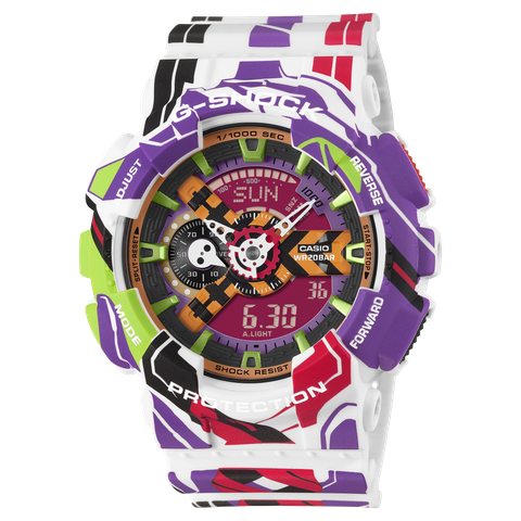Sản phẩm hợp tác đặc biệt giữa G-SHOCK và Evangelion - series anime nổi tiếng toàn cầu, kỷ niệm 30 năm phát sóng truyền hình gốc. Mẫu đồng hồ được chắp bút bởi nhà thiết kế cơ khí Ikuto Yamashita, người đã tạo nên thế giới cơ khí biểu tượng của toàn bộ series. Kết quả là một phiên bản đặc biệt thể hiện trọn vẹn tinh thần và thế giới quan đặc trưng của Evangelion.