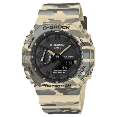 Không ngừng phát triển để hướng tới độ bền tối đa, G-SHOCK giới thiệu một thiết kế mới ấn tượng kết hợp họa tiết ngụy trang phổ biến trong thời trang hiện đại. Những mẫu GA-2100 mới từ Dòng Original Camouflage sở hữu họa tiết ngụy trang MAP độc đáo, tái hiện ấn tượng phong cách đặc trưng của G-SHOCK.