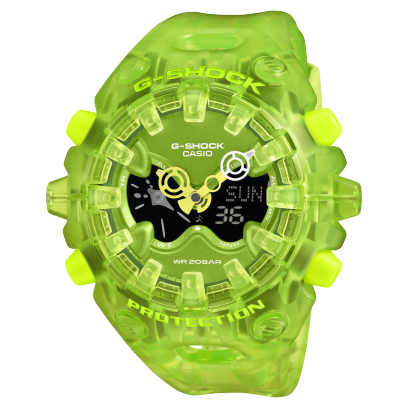 Mặt đồng hồ analog – digital sử dụng thiết kế nhiều lớp với mặt số dạng lộ cơ và LCD toàn màn hình. Trung tâm nổi bật với kim giờ và kim phút có hình dạng độc đáo, trong khi một kim nhỏ tích hợp trong LCD làm tăng thêm vẻ đặc trưng của mẫu đồng hồ. Bộ sưu tập được bổ sung bốn phiên bản màu bán trong suốt, gợi nhớ đến các thiết bị điện tử, đồ chơi và phụ kiện đầu những năm 2000.