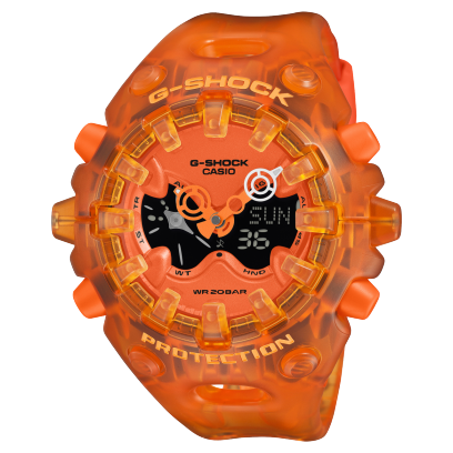 Mặt đồng hồ analog – digital sử dụng thiết kế nhiều lớp với mặt số dạng lộ cơ và LCD toàn màn hình. Trung tâm nổi bật với kim giờ và kim phút có hình dạng độc đáo, trong khi một kim nhỏ tích hợp trong LCD làm tăng thêm vẻ đặc trưng của mẫu đồng hồ. Bộ sưu tập được bổ sung bốn phiên bản màu bán trong suốt, gợi nhớ đến các thiết bị điện tử, đồ chơi và phụ kiện đầu những năm 2000.