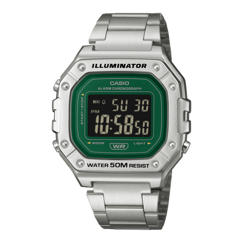 Các mẫu kim MRW-210H và AEQ-110W đi kèm dây nhựa resin, trong khi mẫu kỹ thuật số W-218 sở hữu dây kim loại, tạo nên cá tính riêng biệt rõ nét cho từng chiếc đồng hồ trong tổng thể bộ sưu tập đồng nhất chủ đề xanh lá.